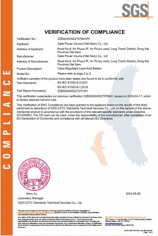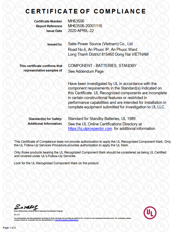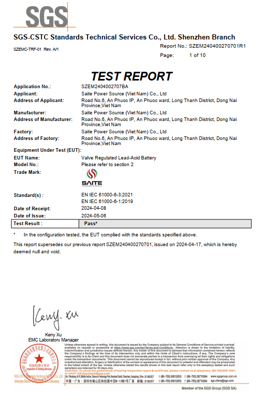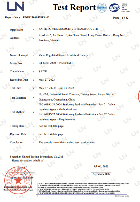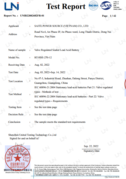 Chứng nhận tiêu chuẩn IEC 60896-21/-22 (12V)