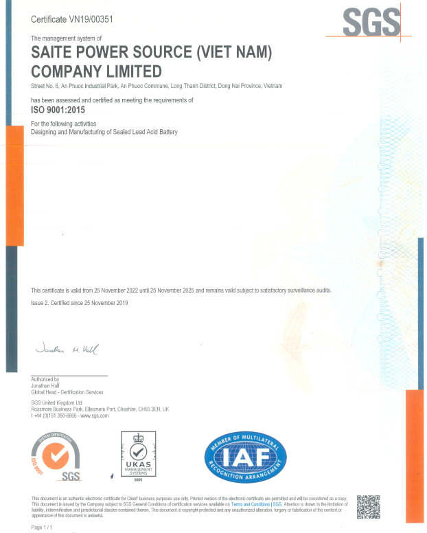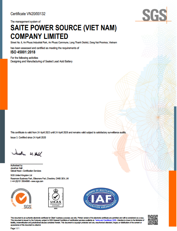 Ắc quy SAITE loại khô kín khí, axit chì (VRLA)